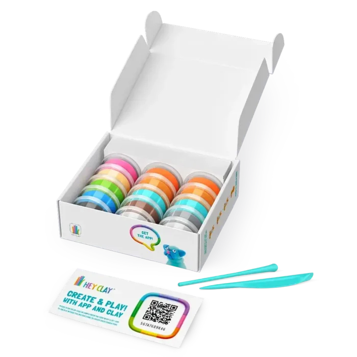 Hey Clay is non-toxic zelfhardende boetseerklei die makkelijk kneedbaar is en niet aan de handen blijft kleven. De zachte klei droogt binnen 20 minuten en is na 24 uur uitgehard, waardoor er direct met de gecreëerde personages gespeeld kan worden. Kinderen hoeven dus niet ongeduldig af te wachten. Hey Clay is creatief speelgoed dat de fantasie, fijne motoriek en creativiteit bevordert.