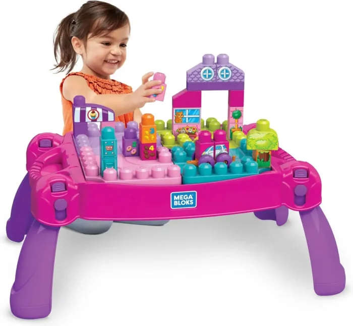 - De tafel is ideaal voor kinderen vanaf 1 jaar en wordt aanbevolen door Fisher-Price. De blokken zijn perfect voor de ontwikkeling van de fijnmotorische vaardigheden, creativiteit en fantasie