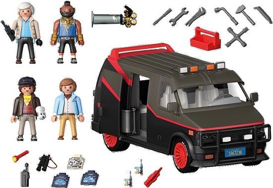 Het A-Team bestaat uit vier ex-soldaten met een ongewone missie. Ze zijn door een militaire rechtbank naar de gevangenis gestuurd voor een misdaad die ze niet begaan hebben. Ze zijn ontsnapt en helpen nu anderen in nood. Als je een probleem hebt, als niemand anders kan helpen, en als je ze kan vinden, kan je misschien, het A-Team inhuren. Naast Hannibal, B.A., Face en Murdock is het vijfde teamlid beslist de megacoole A-Team bus. Met zijn uitgebreide binnenuitrusting met monitor, lasapparaat, bedieningsborden, kast en geperforeerde wand voor diverse accessoires, is het busje goed uitgerust voor elke speciale operatie. Natuurlijk vinden alle teamleden ruimte in de bestelwagen. De dakinzetten kunnen worden verwijderd om gemakkelijker te kunnen spelen. Net als het origineel heeft ook de PLAYMOBIL A-Team bus de iconische driekleurige beschildering, een verlengde zonneklep en rode velgen.